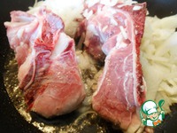 Теперь очередь мясного соуса. На сковороде (желательно глубокой или в кастрюле с толстым дном) обжарить говяжьи косточки прямо с луком. |