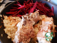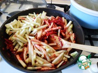Когда они зазолотятся - добавьте свеклу, нарезанную соломкой. Также можно использовать еще и репу. |