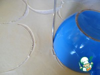 Теперь лепим! Я лепила форму, как для мант. На центр каждого кружочка теста выкладываем хорошую порцию фарша (у меня - чуть больше столовой ложки). |