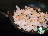 На сухой сковороде слегка подрумяниваем кокосовые чипсы. Чипсы служат для украшения, у кого нет этого ингредиента, -можно смело заменить любимой глазурью, помадкой, сахарной пудрой и т. п. |