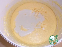 Вводим в маслянную смесь по одному 4 яйца, взбивая после каждого приёма. |