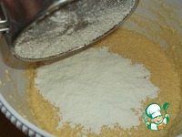 Муку смешиваем с разрыхлителем, просеиваем через сито, вводим в тесто. Тесто тщательно перемешиваем. |
