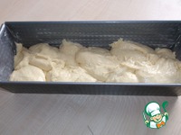 Прямоугольную форму 27*8*7 см ( ёмкостью 1,500 л ) смазываем маслом и заполняем светлым тестом. |