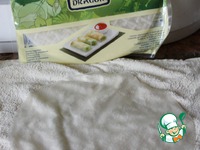 Лист рисовой бумаги опустить на 15 сек. в горячую воду, вынуть и разложить на полотенце. |
