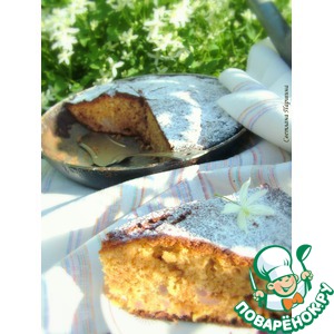 Тесто вылить в форму и выпекать 50-60 минут при 170-180С. Оставить пирог в духовке до полного остывания, затем накрыть салфеткой и дать выстояться 12 часов. Подавать с сахарной пудрой или сливками. |