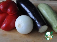 Для приготовления грилованных овощей, конечно, лучше брать молодые овощи. Кабачок, баклажан, лук и болгарский перец моем, чистим. |
