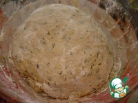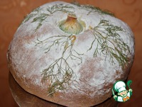 Подошедшую буханочку украшаем мокрыми веточками укропа. |