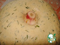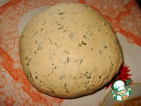 Присыпаем мукой, чтобы укроп не сгорел при выпечке. |