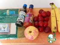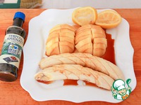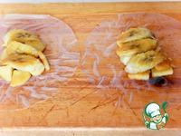 Яблоки и бананы очищаем, нарезаем на кусочки нужной величины (я сильно мельчить не стала), поливаем фрукты соком лимона и Терияки маринадом. Дадим фруктам промариноваться минут 10. |