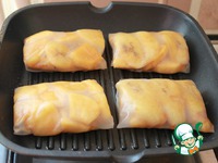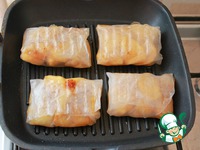 Роллы обжариваем на сковороде гриль, жар средний по 1 мин с каждой стороны. |