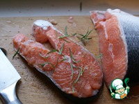 Возьмем свежую семужку, почистим от чешуек, промоем холодной водой. Порежем на порционные кусочки. Посолим, поперчим, посыплем свежим розмарином. |