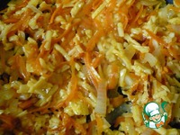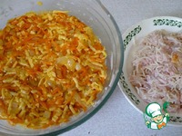 Лук мелко шинкуем, морковь чистим и трем на крупной терке. Все обжариваем с 2 ст. л. масла до полуготовности. |