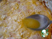 Через 30 мин. вынуть, смазать майонезом и поставить еще на 5-10 мин., чтобы зарумянилось. |