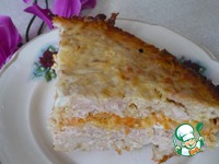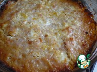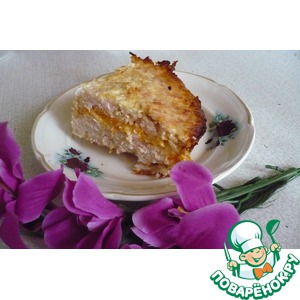 Берем форму и смазываем ее остатками масла полностью. Выкладываем 1/2 часть мясного фарша. На нем разравниваем начинку. |