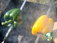 С готовых перцев снять шкурку и вынуть сердцевину с семенами. Нарезать соломкой. |