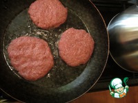 Заготовить плоские котлетки и выложить на разогретую с растительным маслом сковороду. |