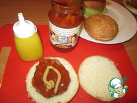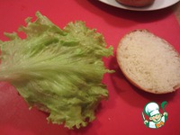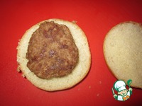 Булочку с кунжутом режем пополам и кладем готовую котлету... |