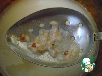 Доводим воду до кипения и крепко солим. Теперь заливаем этим ГОРЯЧИМ рассолом нашу икру и оставляем на 20-30 секунд (не минут ). Не бойтесь - не сварите. |