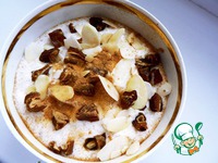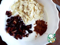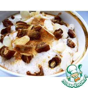 Финики мелко нарезать, выложить в миску с йогуртом. Добавить миндальные лепестки и корицу, всё тщательно перемешать. |