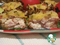 Описание: Это блюдо я нашла на просторах интернета. Приготовила один раз просто на ужин, получилось очень вкусно и сочно. Тут тебе сразу и картофель, и мясо с соусом. Семья попросила добавки, и я сделала ещё. Его можно кушать как холодным, так и в горячем виде. Можно взять на природу: очень удобно и сытно! Пробуйте!