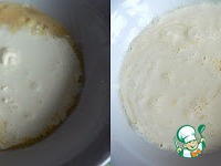 -Сливочное масло растопить и добавить к молочной смеси, всё ещё раз тщательно перемешать. |