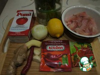 Подготовить продукты и специи. Помидоры из банки крупно порезать, сохраняя стекающий сок. Рыбу порезать небольшими кусочками. |