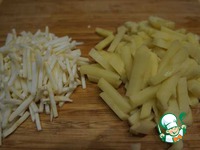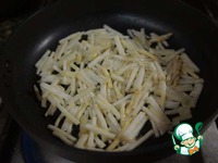Сельдерей нашинковать соломкой. Картофель нарезать брусочками. |