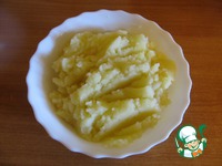 Картофель сварить в соленой воде. Слить воду, добавить сливочное масло и потолочь. |