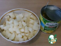 Картофель нарезать. Я обычно режу мелко, почти как на оливье :) |