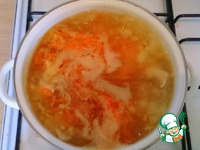 Добавить к нему тёртую (нарезанную, кому как больше нравится) морковь. Пассируем несколько минут. |