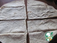 Теперь займёмся лавашем. У меня 2 больших лаваша. Я его разрезала на 4 части, и всего у меня вышло 8 частей. |