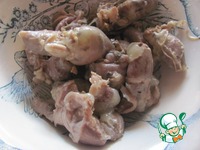 Желудочки и сердечки промываем и отвариваем в подсоленной воде до готовности 30-40 мин. |