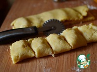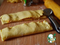 Разрезаем тесто сначала вдоль, затем на порционные кусочки. |