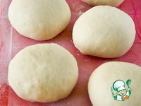 Поднявшееся тесто обмять, разделить на 8 частей и из каждой части скатать шарик. |