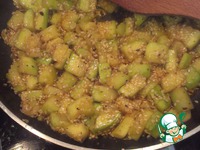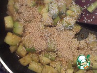 Обжариваем кабачок на подсолнечном масле, добавляем специи, соль, перец и кунжут и жарим дальше |