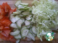 Режем овощи, как нравится - можно соломкой, можно кубиками, салат можно порвать руками (я просто люблю именно нарезанный). |