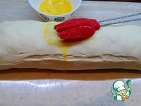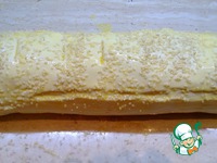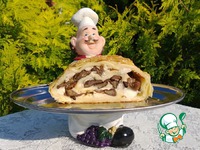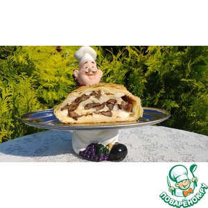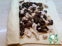 Сверху обжаренные грибочки. И заворачиваем в рулет. |