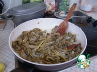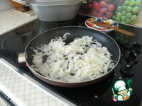 Лук режем полукольцами, обжариваем до золотистой корочки на сковородке. |