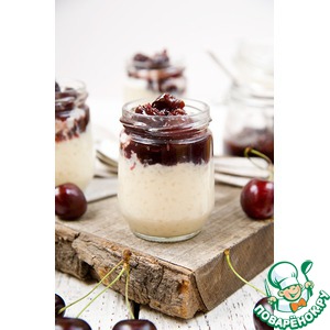 Разложить по тарелкам, формочкам или, как я, по баночкам и полить сверху черешневым чатни. |