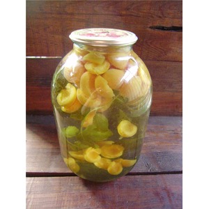 Стерильную 3-х литровую банку заполнить абрикосами на 1/3 и положить пучок мяты.