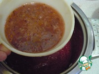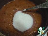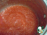 После того как сахар растворился, протираем пюре через сито. Жмых, как всегда, оставляем. |