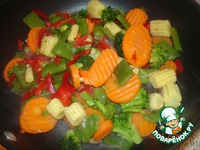 Овощи разморозить, слегка спассеровать на оливковом масле. Посолить, поперчить. |