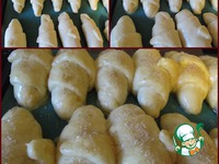В широкое основание треугольного сектора уложить начинку, тщательно упаковать её, чтобы не вытекал сок, а потом свернуть рогалик. |