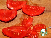 Помидоры разрезать на 4 части, удалить зернышки и сок. Нарезать на небольшие кусочки.. |