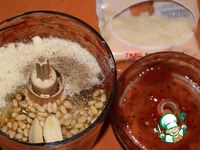Поместить в чашу блендера помидоры, базилик и пробить в режиме пульс до состояния пюре. Добавить орешки, чеснок, масло, пармезан, соль и перец... |