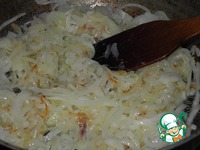 Режем лук полукольцами. В сковороду налить половину порции подсолнечного масла и поджарить лук до прозрачности. |