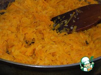Вторую половину масла на сковороду и поджариваем морковь. |