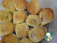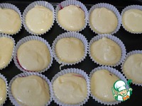 Формочки для кексов (лучше силиконовые, к бумажным прилипает ) на 1/3 заполнить тестом. В каждую положите по вишенке (можно другие ягоды ). |