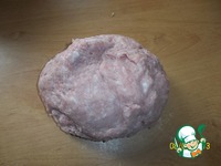 Замешиваем тесто из кефира, соды, соли (на кончике ножа) и муки. Тесто должно получится мягким и не должно липнуть к рукам. |