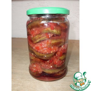 Описание: Отличная закуска для любителей "острых ощущений")) На фото - свежезаготовленные баклажанчики. Правда, выглядит закладка не очень красиво, я обычно стараюсь колечки баклажанов складывать ровненько и смесь класть чуть меньше и равномерно, в этот же раз были маленькие "помощники"))